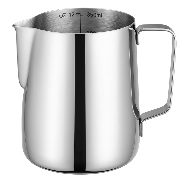 Maak perfecte cappuccino’s en latte macchiato’s met de My Green Deal RVS Melkkan (350 ml). Deze professionele melkopschuimkan is ontworpen voor precisie en gebruiksgemak – ideaal voor het opschuimen, schenken en creëren van latte art. Gemaakt van hoogwaardig roestvrij staal en geschikt voor dagelijks gebruik in elke keuken of koffieset-up.