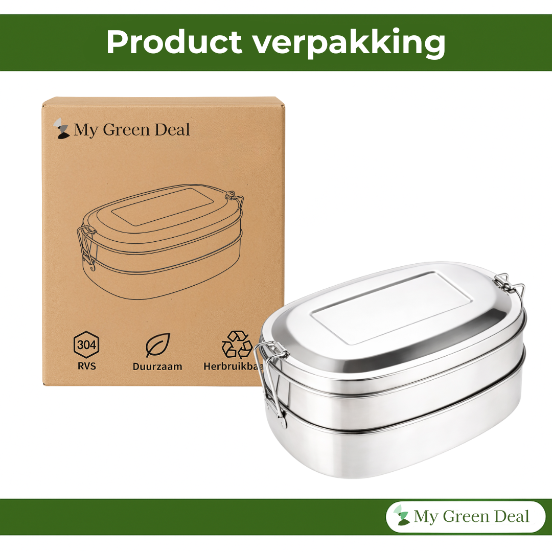Deze stapelbare RVS lunchbox set van My Green Deal bestaat uit twee ovale lunchboxen van 500 ml die stevig op elkaar te klikken zijn. Ideaal voor het gescheiden meenemen van verschillende maaltijden, snacks of ingrediënten. Perfect als lunchbox rvs, snackbox, broodtrommel of voor meal prep bakjes, zonder dat smaken of geuren zich mengen.