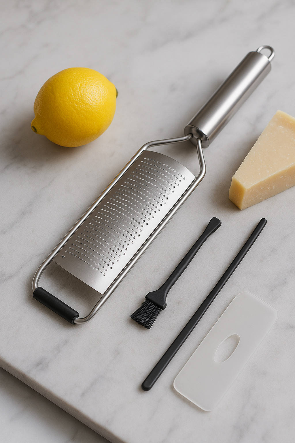 ✔ Superscherpe fijne rasp – ideaal voor kaas, citrus, knoflook, gember of chocolade.