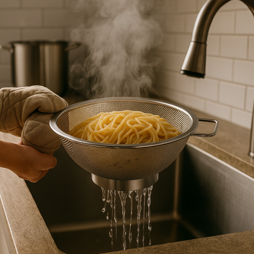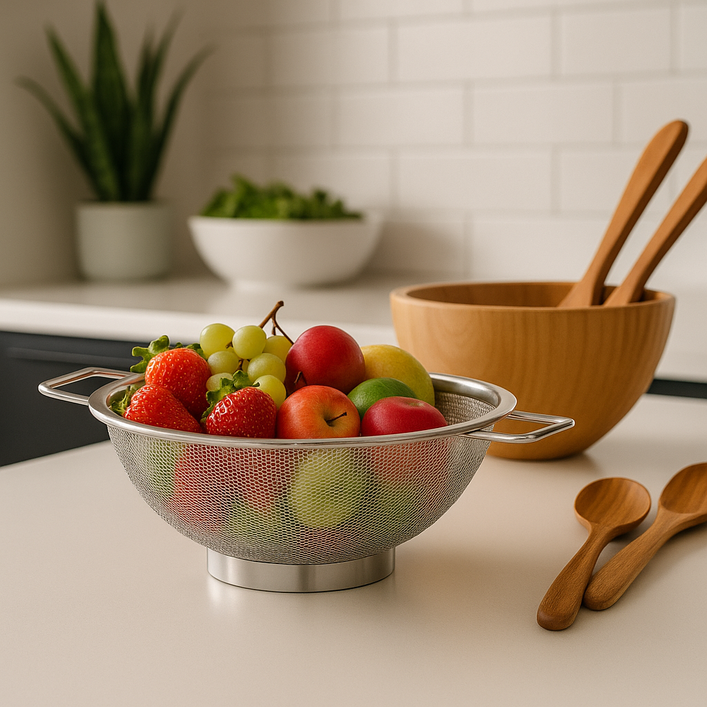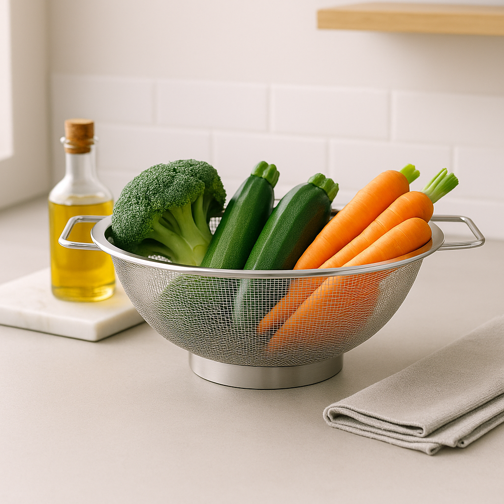 Of je nu pasta afgiet, sla wast of fruit spoelt – de My Green Deal RVS Keukenzeef maakt elke kooktaak makkelijker. Dankzij het doordachte ontwerp is hij stabiel, veilig en hygiënisch, ideaal voor intensief gebruik in elke keuken.