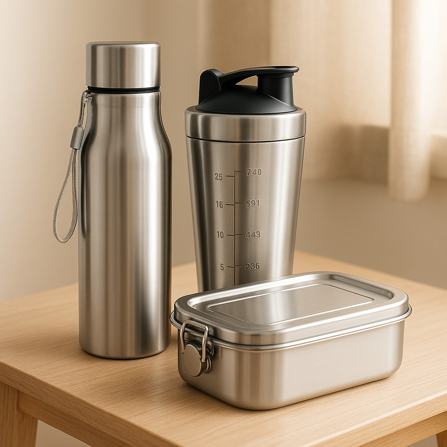 Ontdek de perfecte combinatie van stijl, functie en duurzaamheid met onze RVS collectie – ontworpen voor een bewuste levensstijl, van werk tot workout.