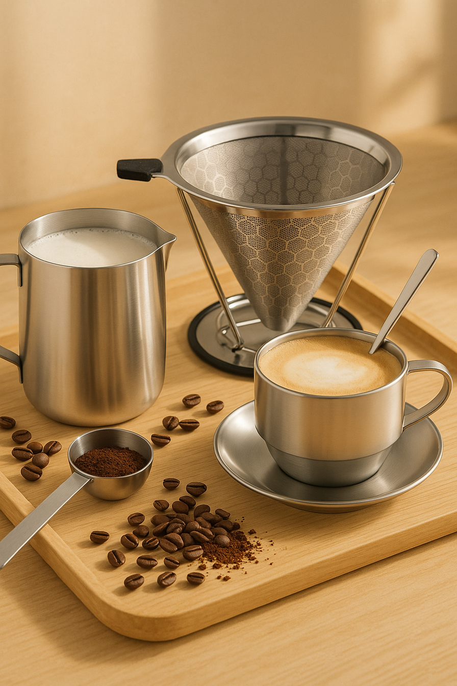 Ontdek de RVS koffiebeker, dripper en maatschepjes – ontworpen voor wie houdt van eenvoud, kwaliteit en een vleugje luxe.